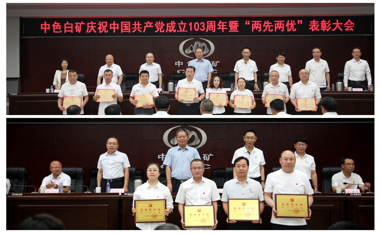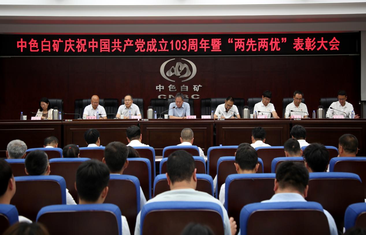 6月27日,中色白矿党委召开纪念中国共产党成立103周年暨“两优两先”表彰大会,回顾党的历史,庆祝党的生日,表彰先进典型,交流工作经验,激励各级党组织和广大党员牢记嘱托、感恩奋进,为推动公司可持续高质量发展,加快建设“安全、绿色、智能、高效”的一流矿业企业贡献力量。党委书记、董事长、总经理常永强作重要讲话,党委副书记王喜坤主持会议,班子成员、党员代表、积极分子代表120余人参加会议。