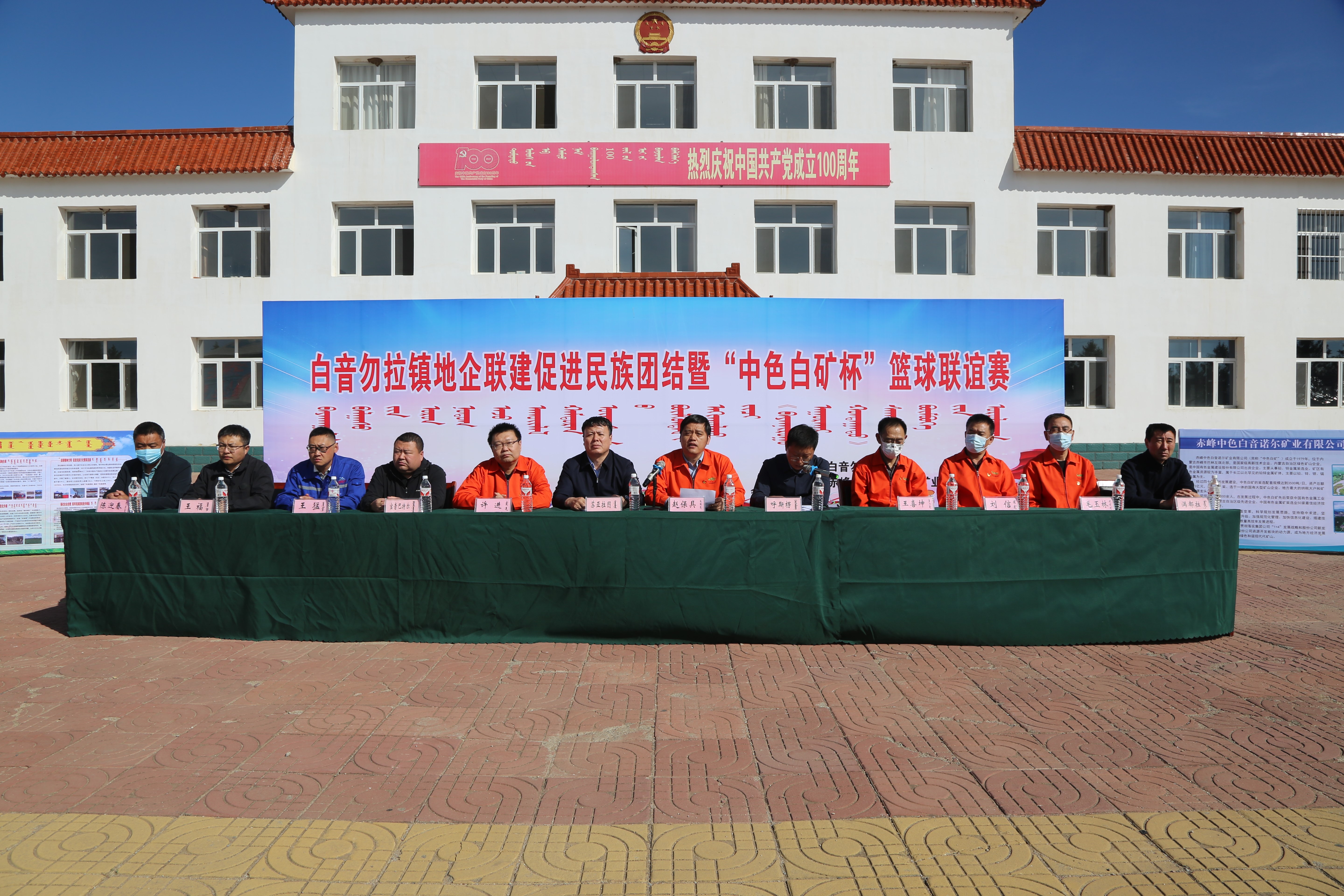2022年5月25日,在做好疫情防控的前提下,中色白矿党委与白音勿拉镇党委联合举办地企联建增进民族团结暨“中色白矿杯”篮球联谊赛,进一步铸牢中华民族共同体意识,以崭新的姿态迎接党的二十大胜利召开。中色白矿领导班子、白音勿拉镇领导班子参加开幕式。中色股份副总经理、中色白矿党委书记、董事长赵保具,白音勿拉镇党委书记苏亚拉图分别致辞。
